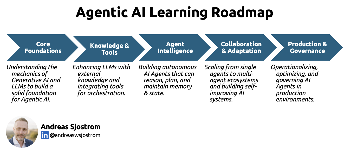 To bridge this gap, I created a 5-Stage AI Agents Learning Roadmap. It answers one question: “How do you go from foundational Generative AI to production-ready, governed AI Agents?”